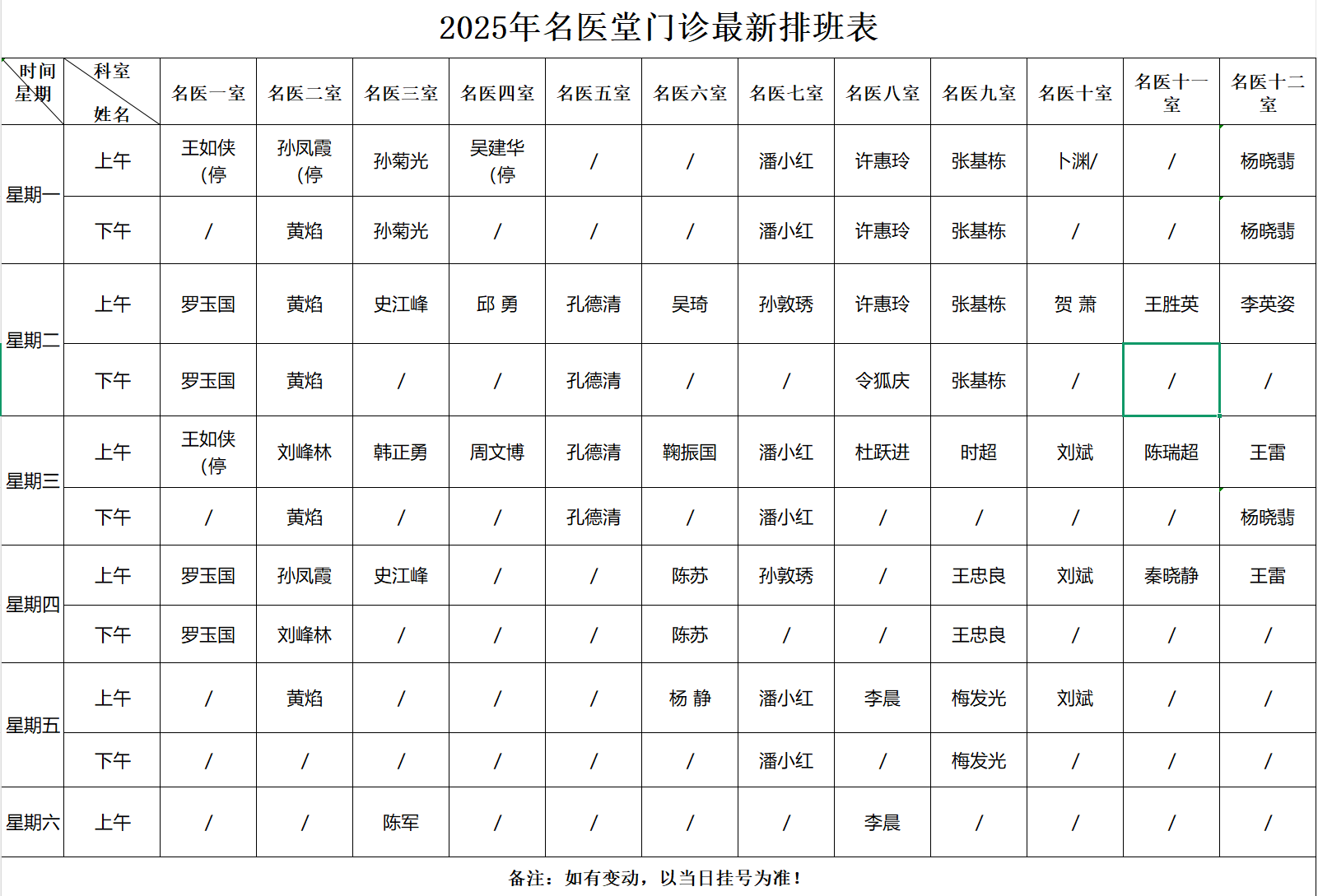 名医堂出诊表