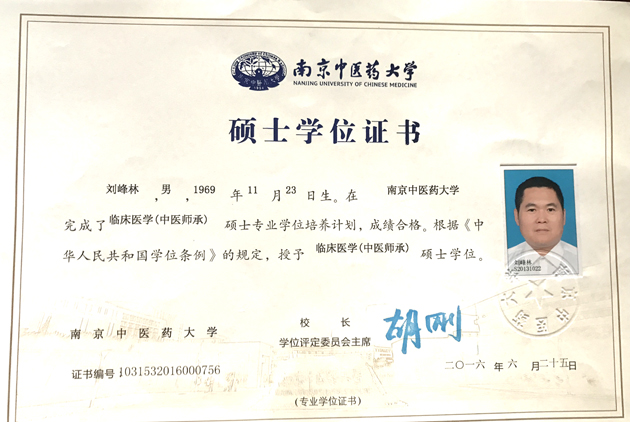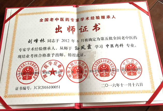 刘峰林,副主任中医师,副教授,中医师承硕士,徐州市中医院肿瘤内科副主任,孙凤霞全国名老中医药专家传承工作室建设项目负责人,第五批全国老中医药专家学术经验继承人,师承孙凤霞教授。刘峰林说:“跟随孙老应诊,从写病例、四诊(望、闻、问、切)入手,老师把她的辨证思想、用药经验,包括如何抓主症、辨证分析、治法、用药经验及诊疗技巧等,都毫无保留地教给我们,体现了孙老对中医事业强烈的使命感和责任感。”