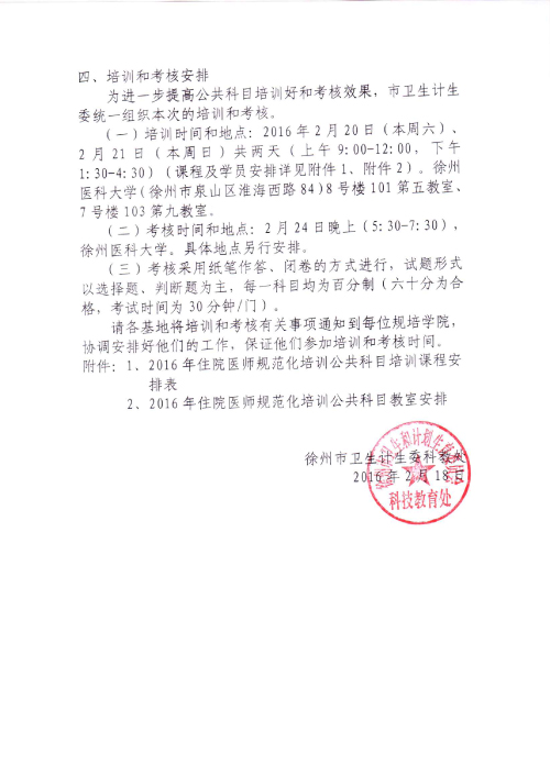 附件1徐州市2016年住院医师公共科目培训课程安排