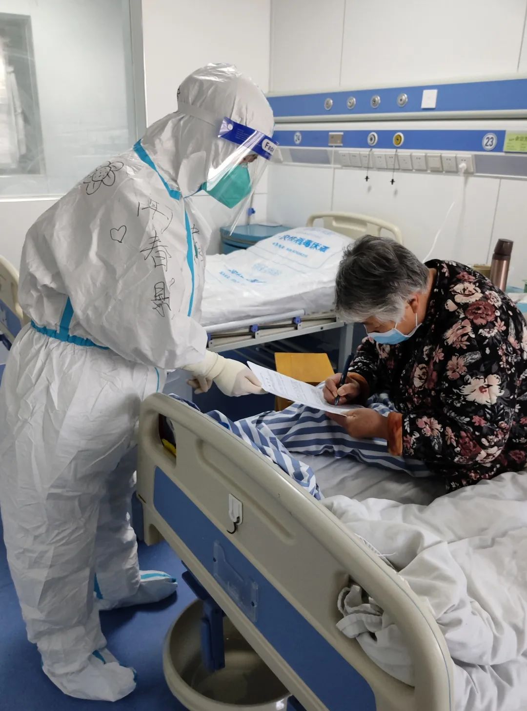 隔离病房隔断的是病毒,却隔不断护理人员对患者的关爱与守护。