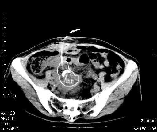 影像科穿刺团队郝申、张勇猛医师阅片后发现,此处脓肿位于盆腔深部,前方肠管横跨,几乎无进针路径;后方及侧方髂骨及骶骨遮挡,无法进针。