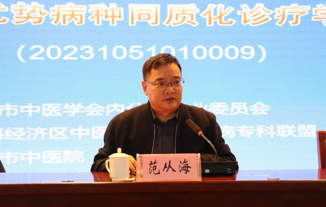 徐州市中医院党委书记范从海到会并出席开幕式。范从海书记代表徐州市中医院对远道而来的各位专家和同仁表示热烈的欢迎。范书记简要介绍了徐州市中医院的历史沿革及近年来医院高质量发展的整体情况。