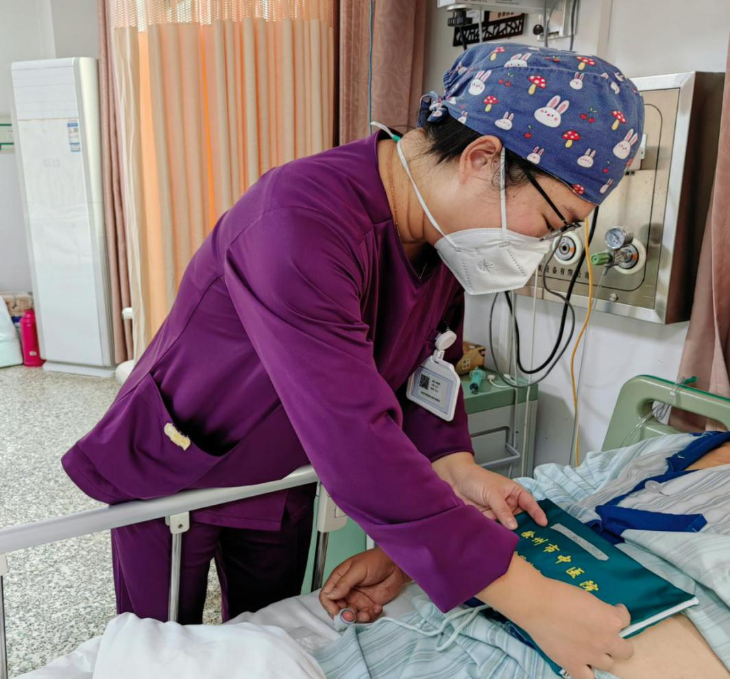王先生在经冠状动脉药物涂层置入支架术后,因为压迫器压迫桡动脉止血,出现一侧的上肢肿胀、疼痛难忍。在排除血肿及渗血并发症后,CCU护理团队将热奄包(温阳通脉散250g),沿桡动脉穿刺部位周围肌肉走向及经络、穴位进行烫熨疗法。