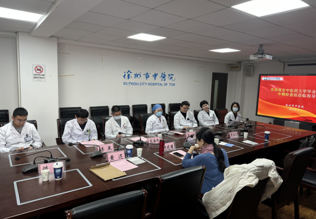 1月23日,南京中医药大学第一临床医学院副院长何晓瑾教授一行8人来我院开展年度临床医学专业实习中期教学检查。党委副书记、院长殷海涛,党委委员、副院长梁田,科教科全体成员,各教研室教学秘书以及骨干教师等陪同检查。