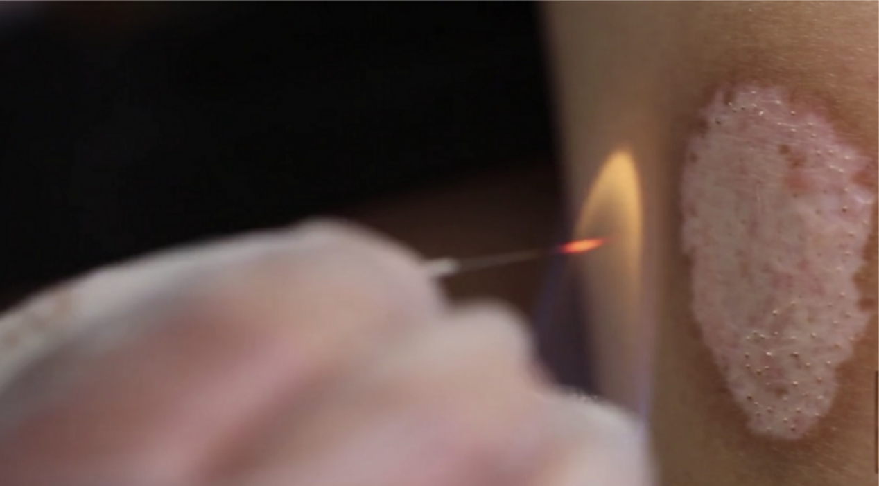徐州市中医院皮肤科开展火针治疗白癜风。将毫针用火烧红后,点刺白斑处,具有祛风通络、活血化瘀的功效,能够调节皮肤局部免疫,促进黑素细胞功能的恢复。