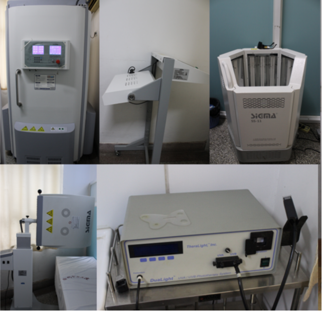 徐州市中医院皮肤科光疗中心拥有304高能紫外线治疗仪,以及多台局部、半舱及全舱窄谱中波紫外线治疗仪,能满足各个患者不同部位的治疗需求。