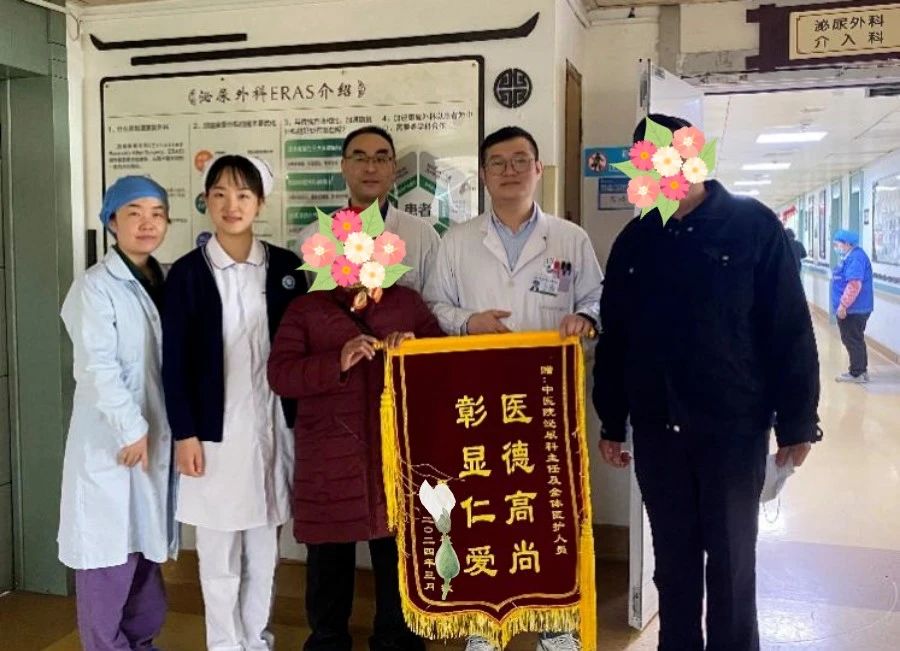 在术后康复过程中,赵大妈对郑典宝主任团队表示了深深的感激。她说:“这次手术让我真正体会到了铥激光技术的神奇,是医生的高超技术、护士的暖心照料、手术室团队的密切配合,才使我快速康复,也让我对徐州市中医院充满了感激。”为了表达感谢之情,出院后赵大妈特地向医生和护士团队赠送了一面锦旗,锦旗上写着:“医德高尚 彰显仁爱”。