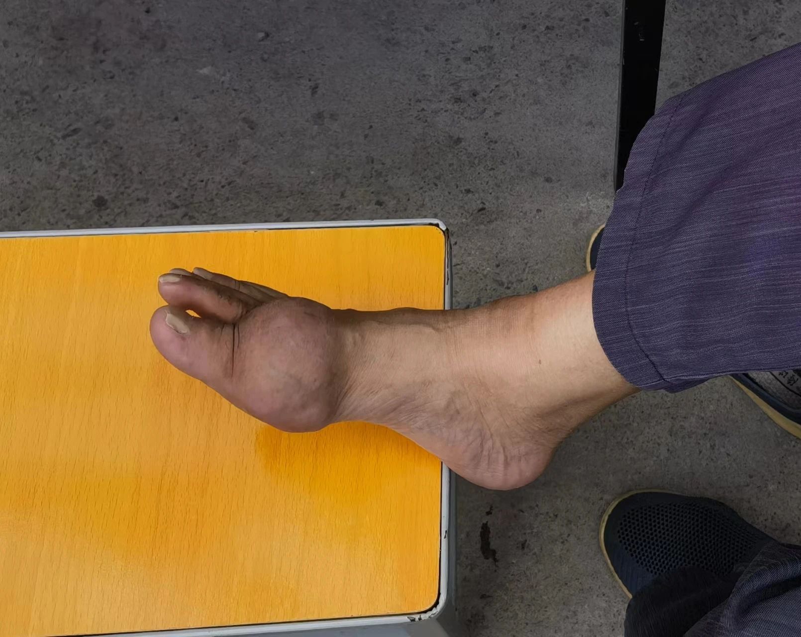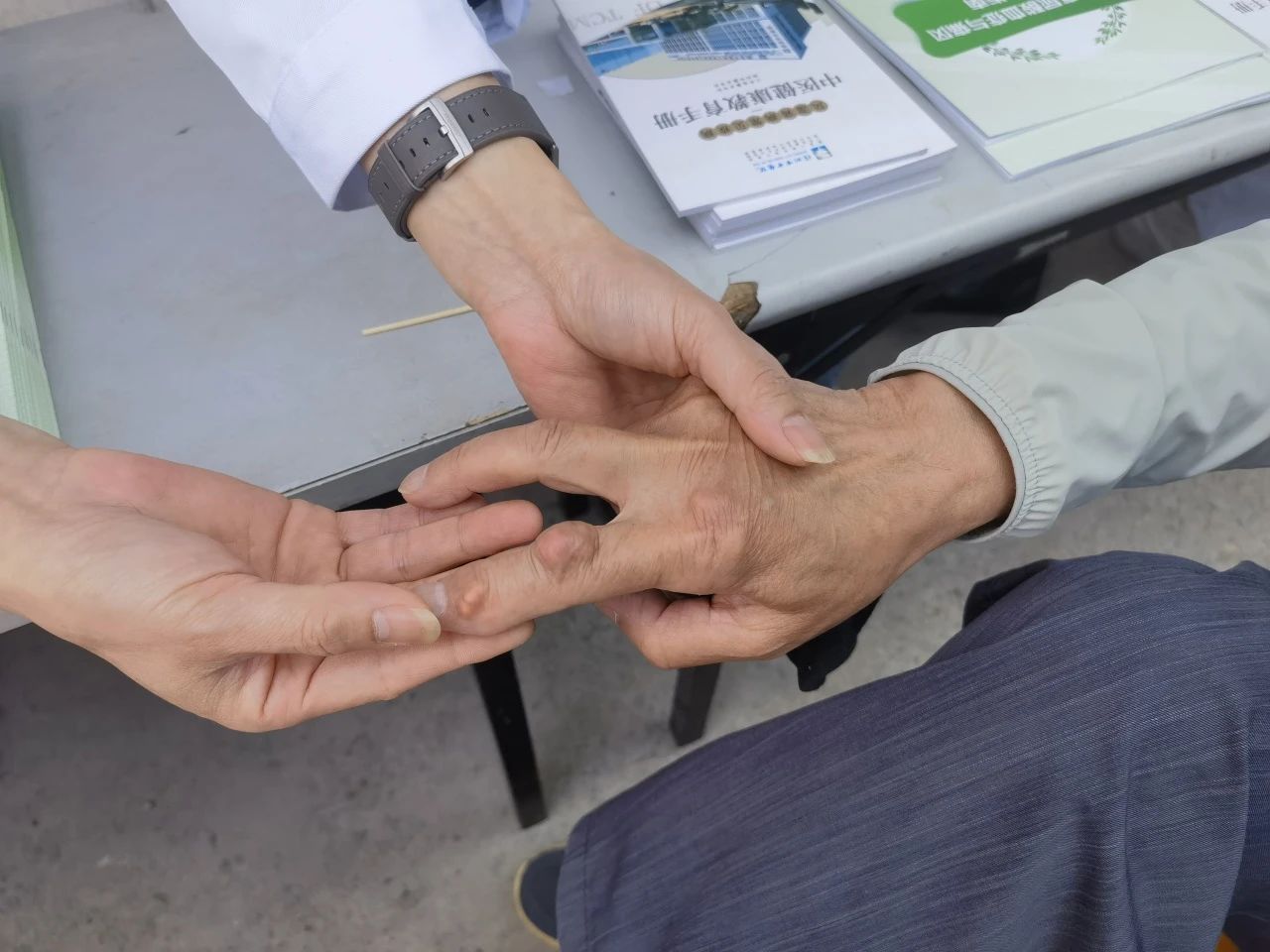 现场一位典型的慢性痛风的病友,关节肿痛反复发作,病史已经有20年余了,其中左足第一趾跖关节附近和左手第二掌指关节和近端指间关节伸侧均出现了痛风石,这样的患者就需要积极科学的降尿酸治疗,陈鹏主任中医师讲到,科学合理饮食和中西药配合治疗,将血尿酸的目标300umol/l以下,只有这样痛风石才能慢慢溶解排出体外,除此之外还需要多饮水,科学控制体重。