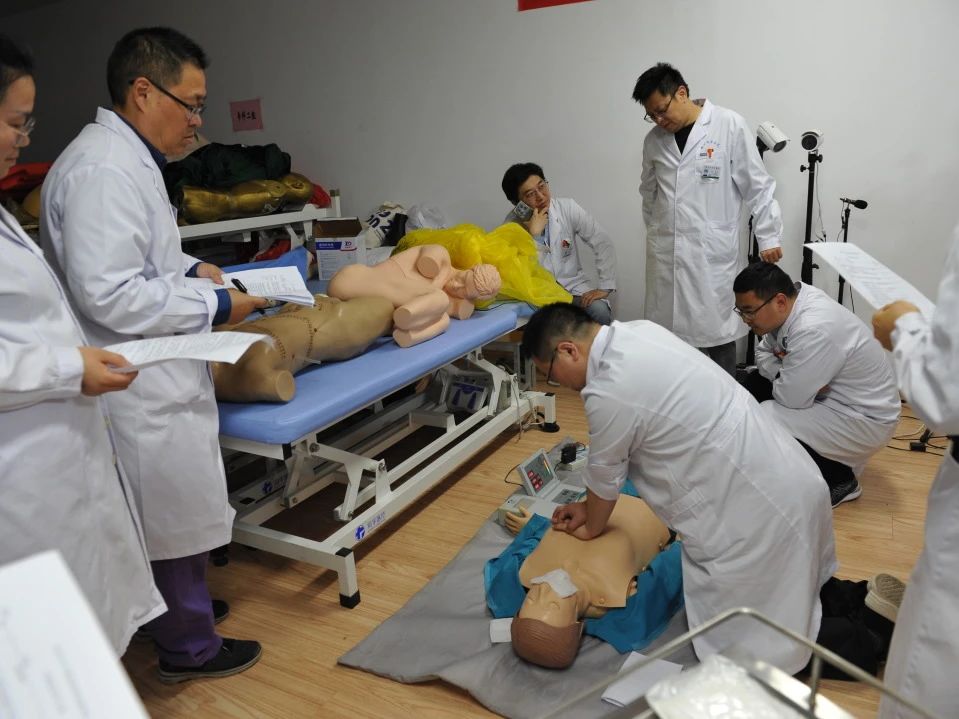 培训专家结合临床实际工作,详细讲解了心肺复苏的重要性,通过对“模拟人”实施心肺复苏抢救,为大家演示操作要点,包括判断是否丧失意识、有无脉搏和呼吸、胸外心脏按压、开放气道、人工呼吸和电除颤等环节。参加培训的医师认真学习,积极进行操作演练,并全部通过考核。