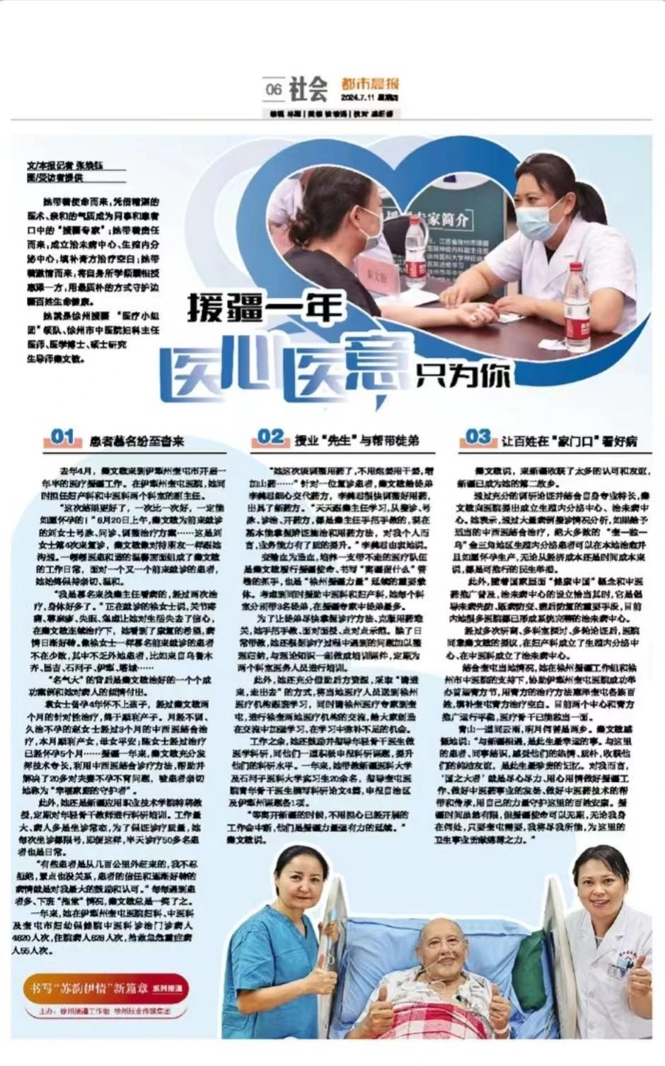 近日,《徐州日报》《都市晨报》《徐州援疆》分别以《时间虽然有限,但使命可以无期》《援疆一年, 医心医意只为你》为题对徐州援疆医生秦文敏的事迹进行报道。