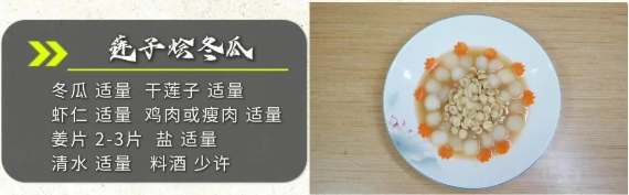 冬瓜、干莲子、虾仁、鸡肉或瘦肉适量、姜片 2-3片