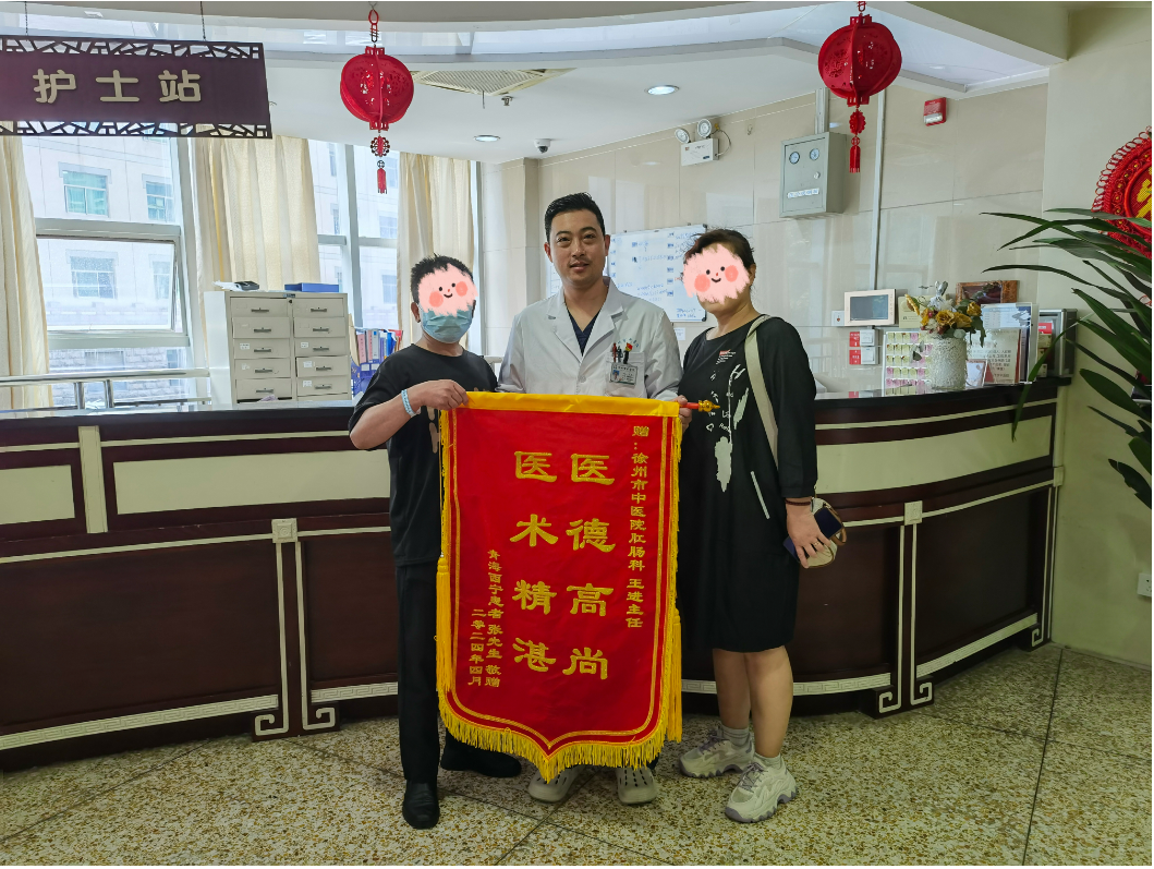 徐州市中医院肛肠一科十三病区的病房,暖阳透过窗户,洒在张先生舒心的脸上。这位来自青海省西宁市的患者,紧紧握住王进主任的手,将一面写有“医德高尚 医术精湛”的锦旗...