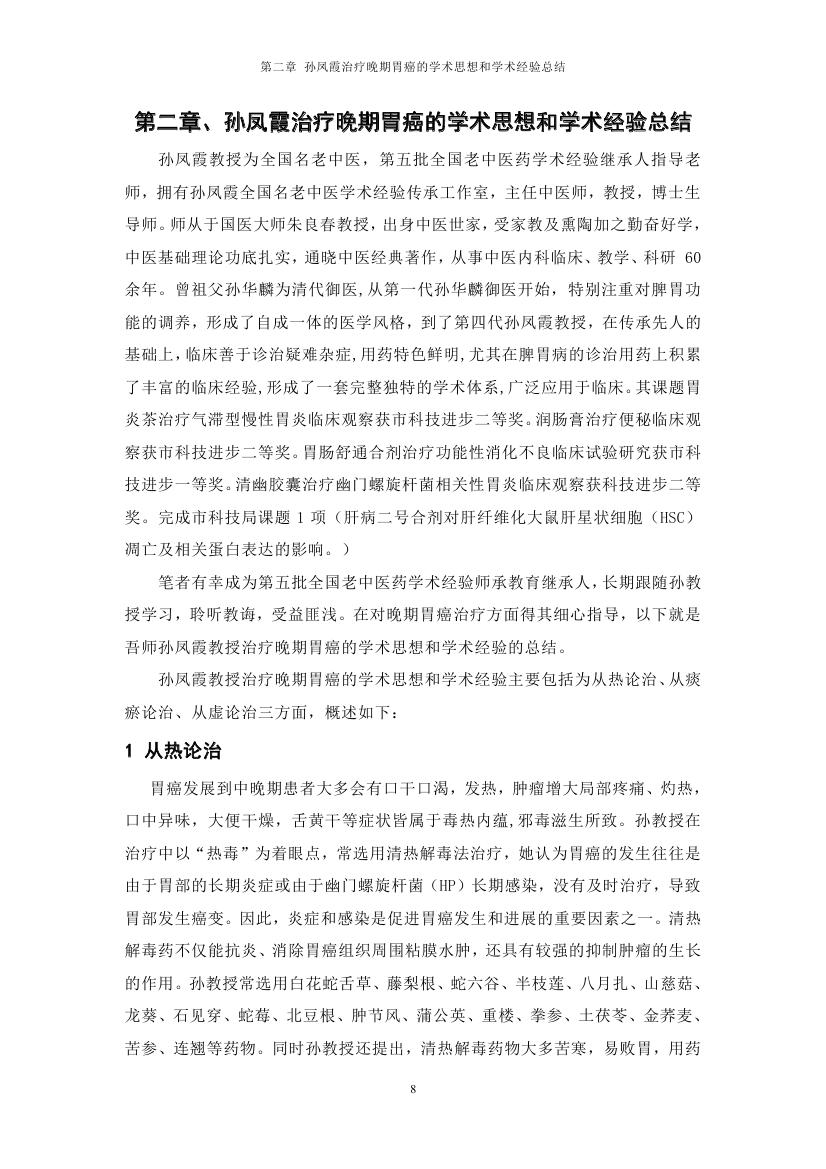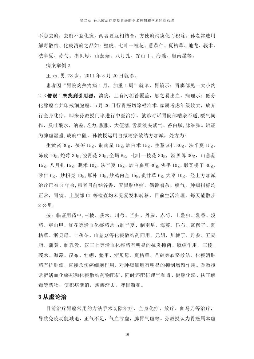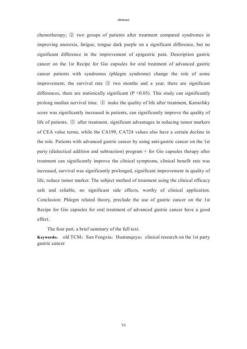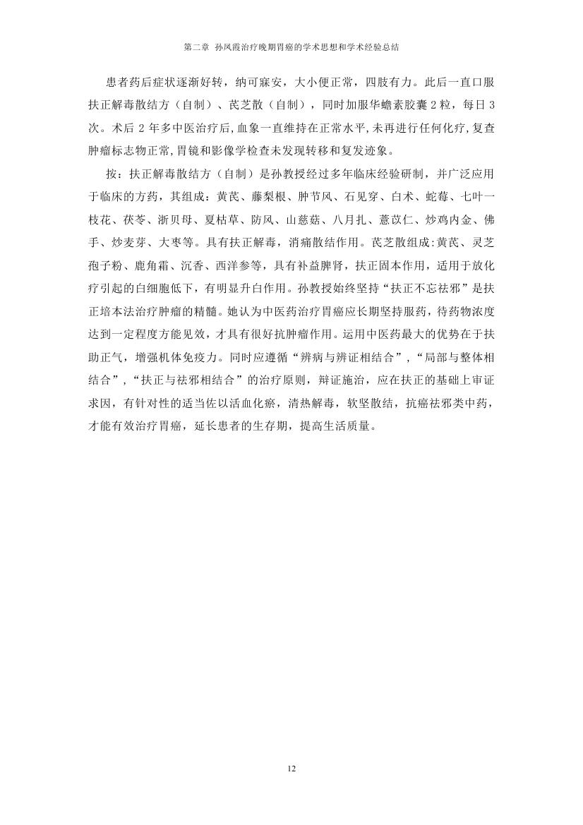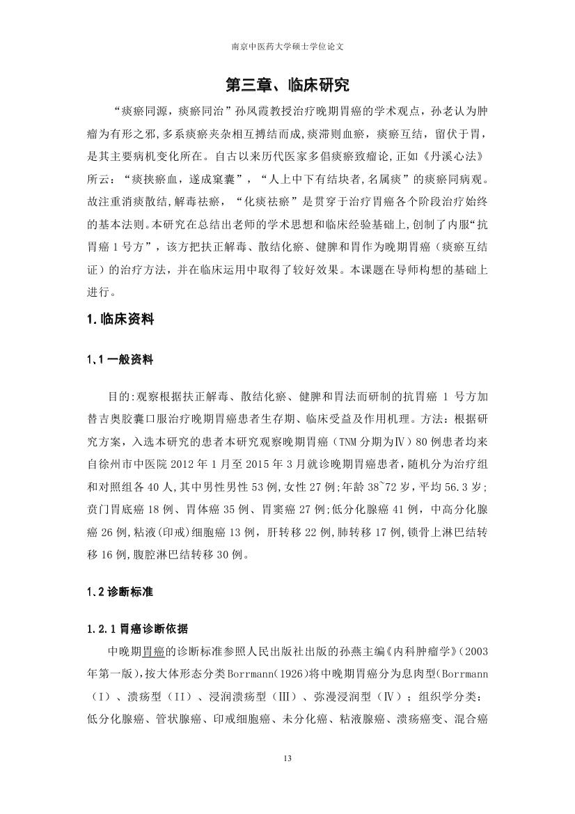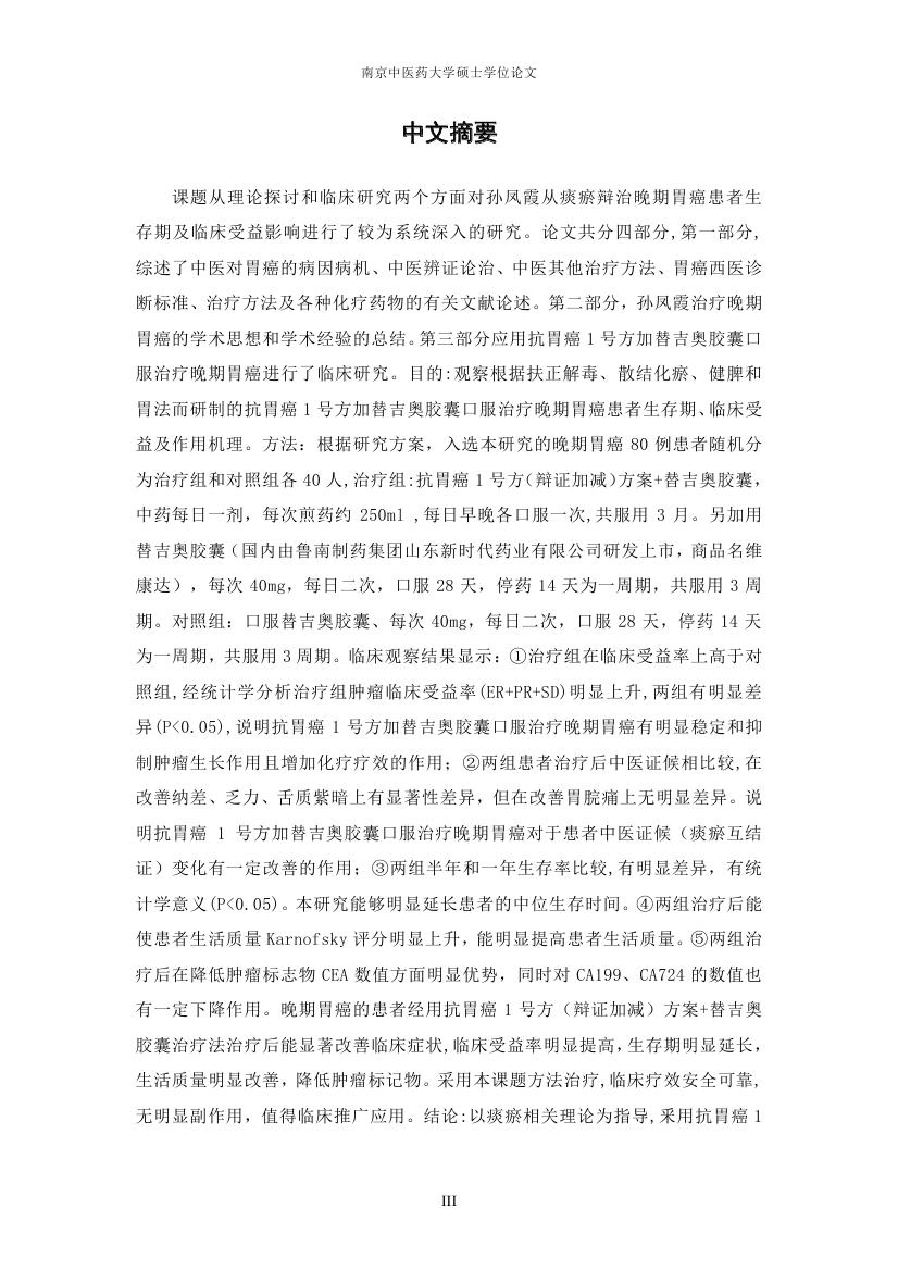 孙凤霞从痰瘀辨治晚期胃癌患者生存期及临床受益影响的研究