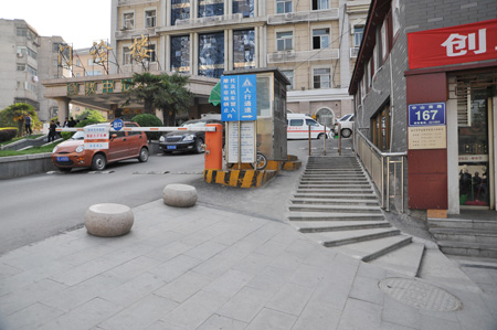 医院门诊楼南坡道增设台阶、扶手,方便患者就医