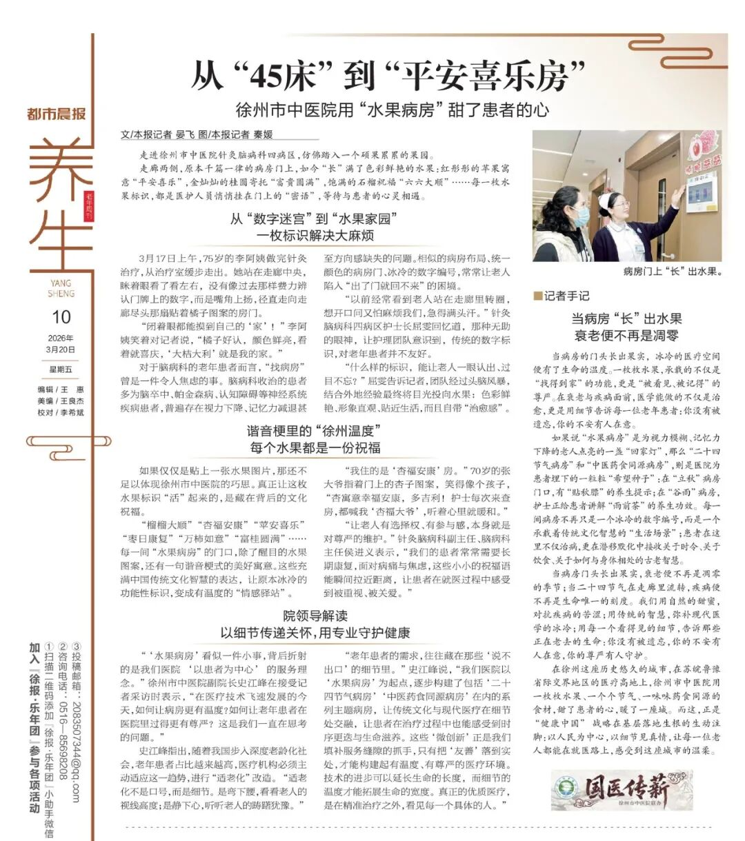 走进徐州市中医院针灸脑病科四病区,仿佛踏入了一个硕果累累的果园。 走廊两侧,原本千篇一律的白色病房门上,如今“长”满了色彩鲜艳的水果:红彤彤的苹果寓...
