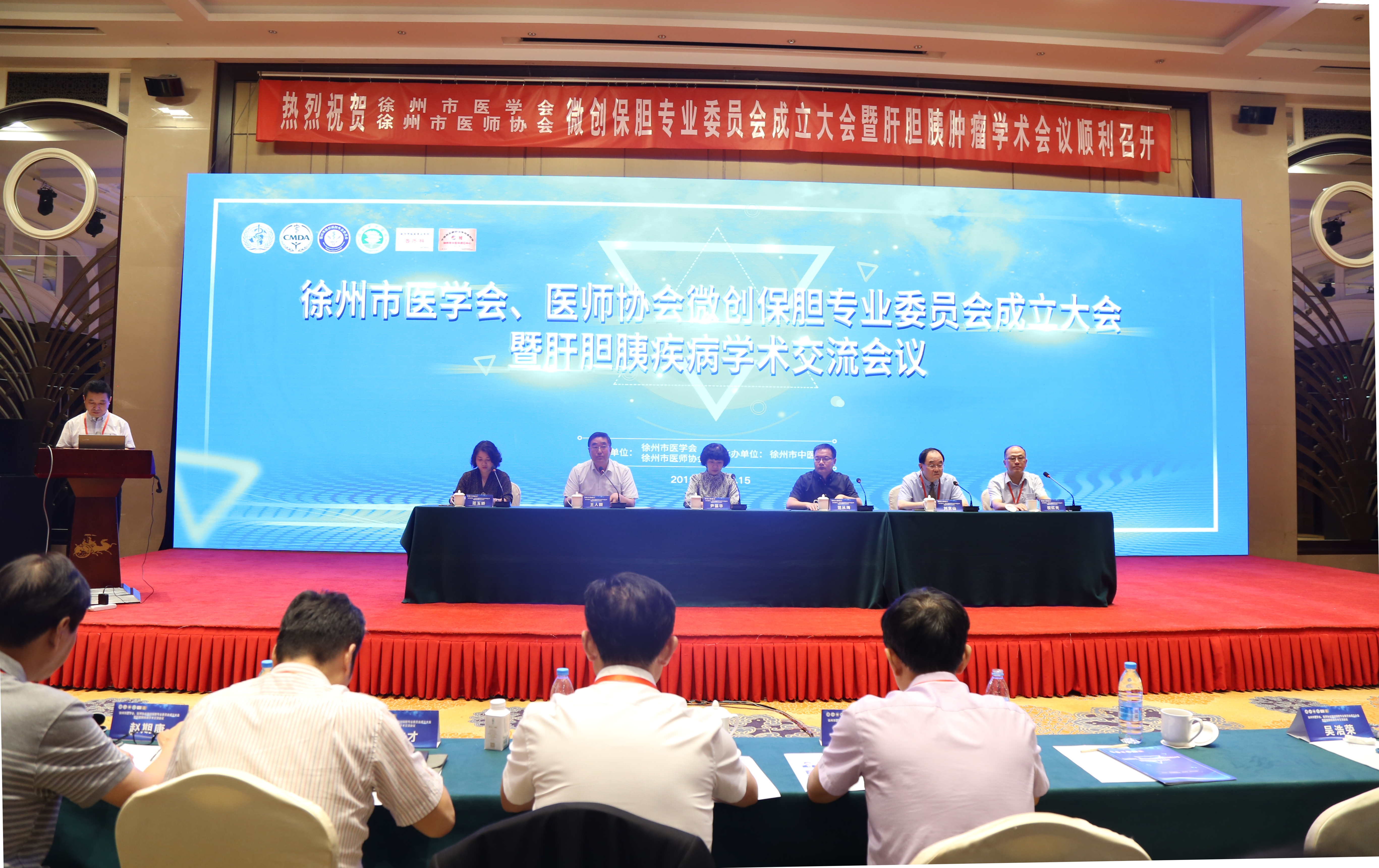 9月15,由徐州市医学会、医师协会主办,徐州市中医院承办的徐州市医学会、医师协会微创保胆专业委员会成立大会暨肝胆胰肿瘤学术会议隆重召开。徐州市卫健委副主任尹葆华、徐州市中医院院长范从海、徐州市医科大学附属医院党委书记王人颢、中国医师协会内镜微创保胆专业委员会主任委员刘京山、徐州医学会秘书长范玉娇、徐州市中医院普外科主任权红光出席开幕式并致辞。徐州市中医院普外科主任医师徐磊主持会议。