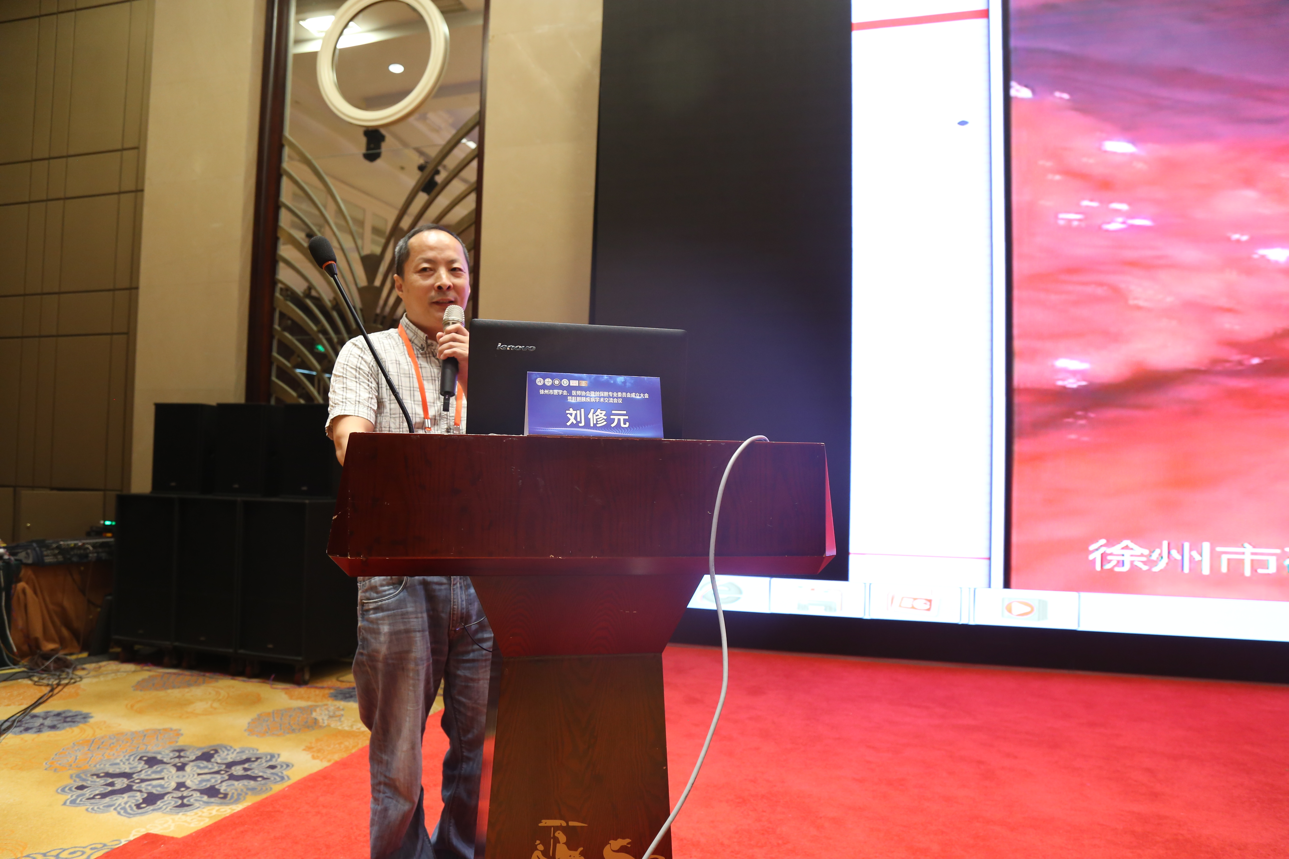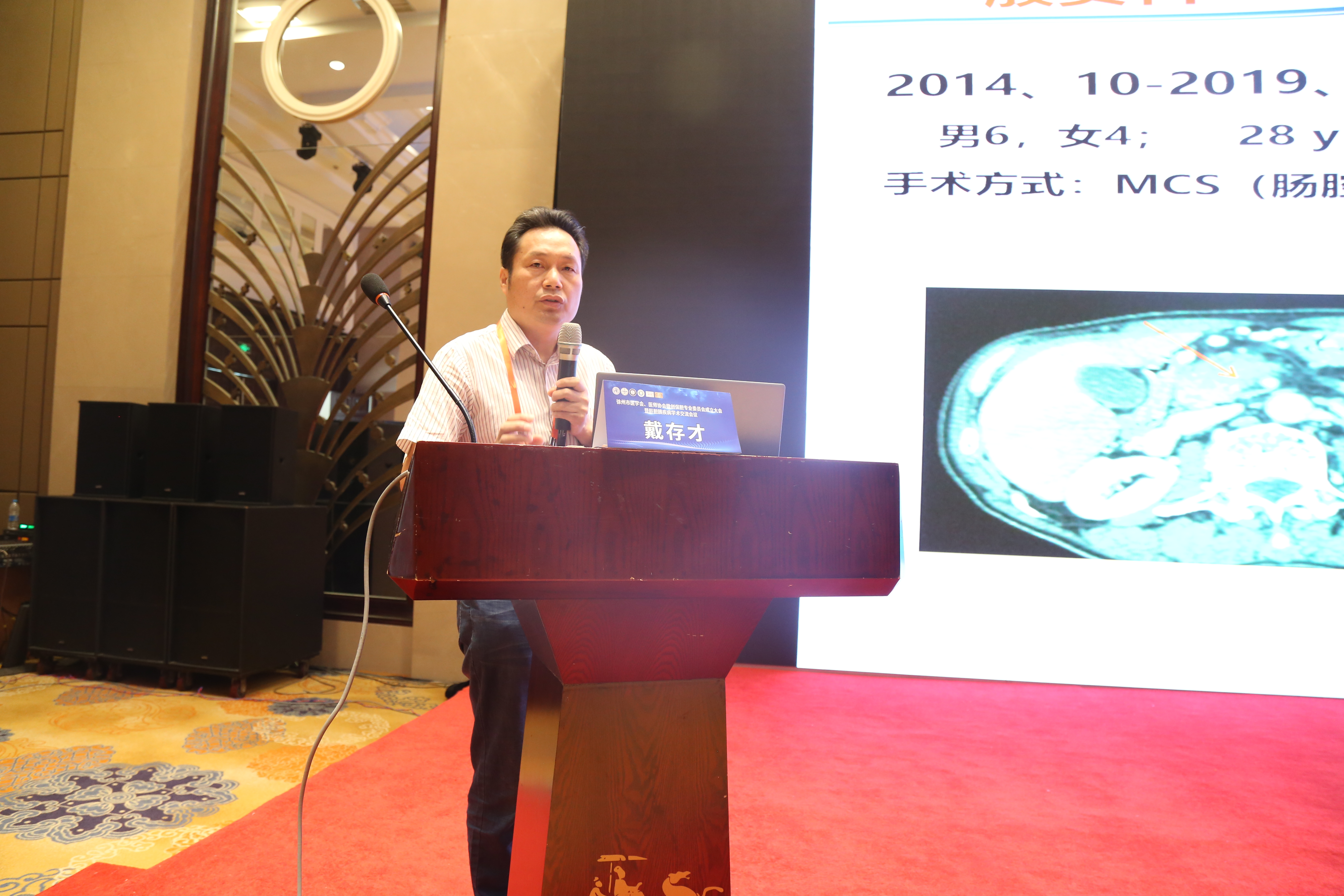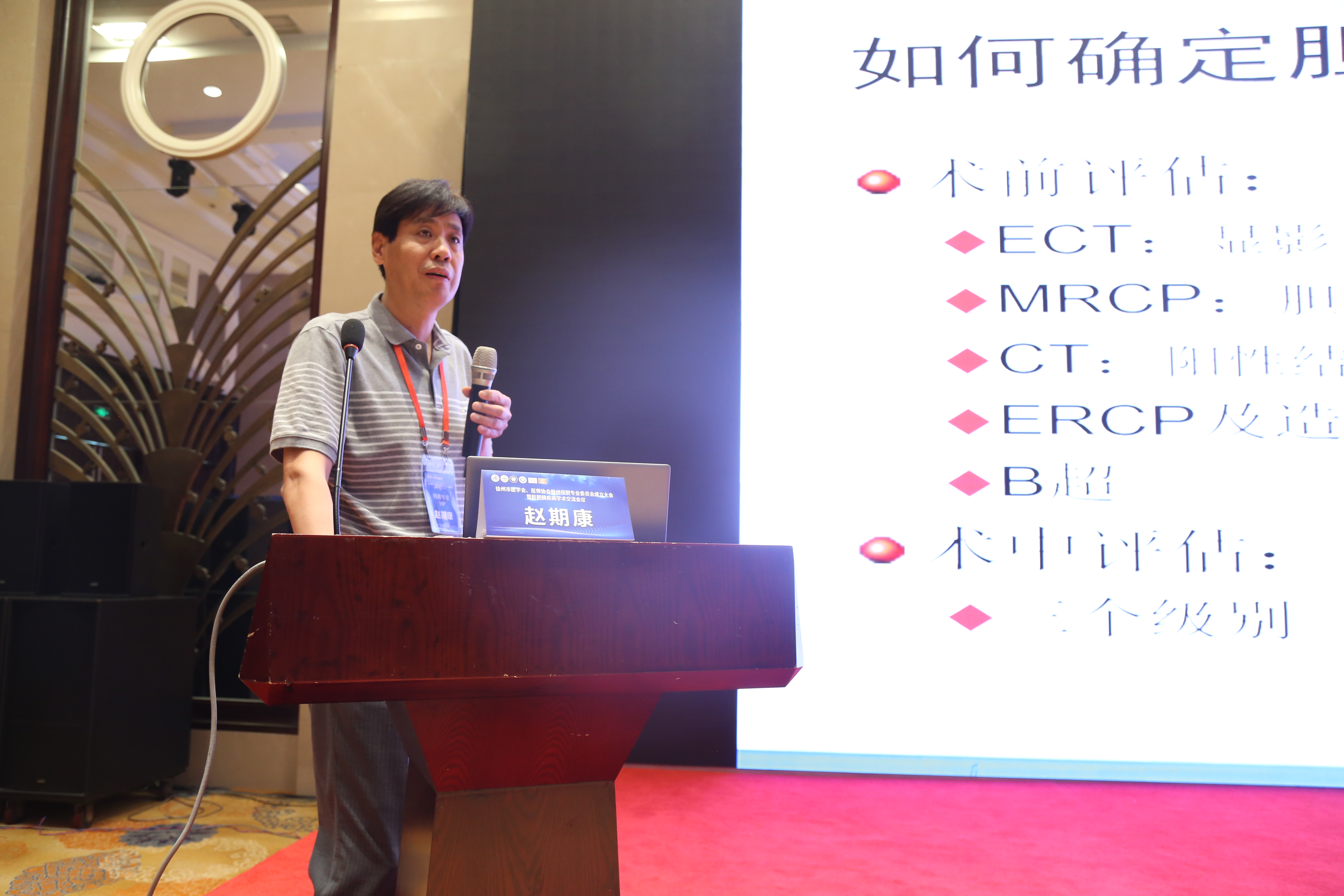 徐州市中医院院长范从海致欢迎辞,他首先向莅临指导授课的专家学者们表示诚挚的欢迎,并对“徐州市医学会、医师协会微创保胆专业委员会”的成立表示热烈的祝贺,同时向与会者介绍了医院的历史沿革和发展概况。范院长表示,中西医并重是习总书记对我国医学发展战略性要求,中医的发展也离不开同行们的支持,这次徐州市医学会、医师协会微创保胆专业委员会的成立也为徐州市广大医学同仁搭建了一个相互学习相互交流的平台,将有力促进徐州乃至淮海经济区肝胆外科的学术、技术水平提档升级。