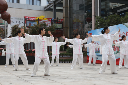 随着轻柔舒展的乐曲,白衣天使们的八段锦表演,吸引了众多市民驻足观看,他们的一招一式无不传递着健康青春的气息,整个表演追求“天人合一,阴阳平衡,身心健康”。 八段锦柔筋健骨、养气壮力,具有行气活血、畅通经脉、灵活盘骨、协调五脏六腑之功能,既可防病健身,又能医治疾病,特别是对一些久治不愈的慢性病、亚健康人群尤其适宜。长期练习可以生发阳气,疏肝理气,强健脾胃,增强体质、预防疾病,达到强身健体、怡养心神、益寿延年、防病治病的效果,现场的表演受到市民的热烈欢迎。