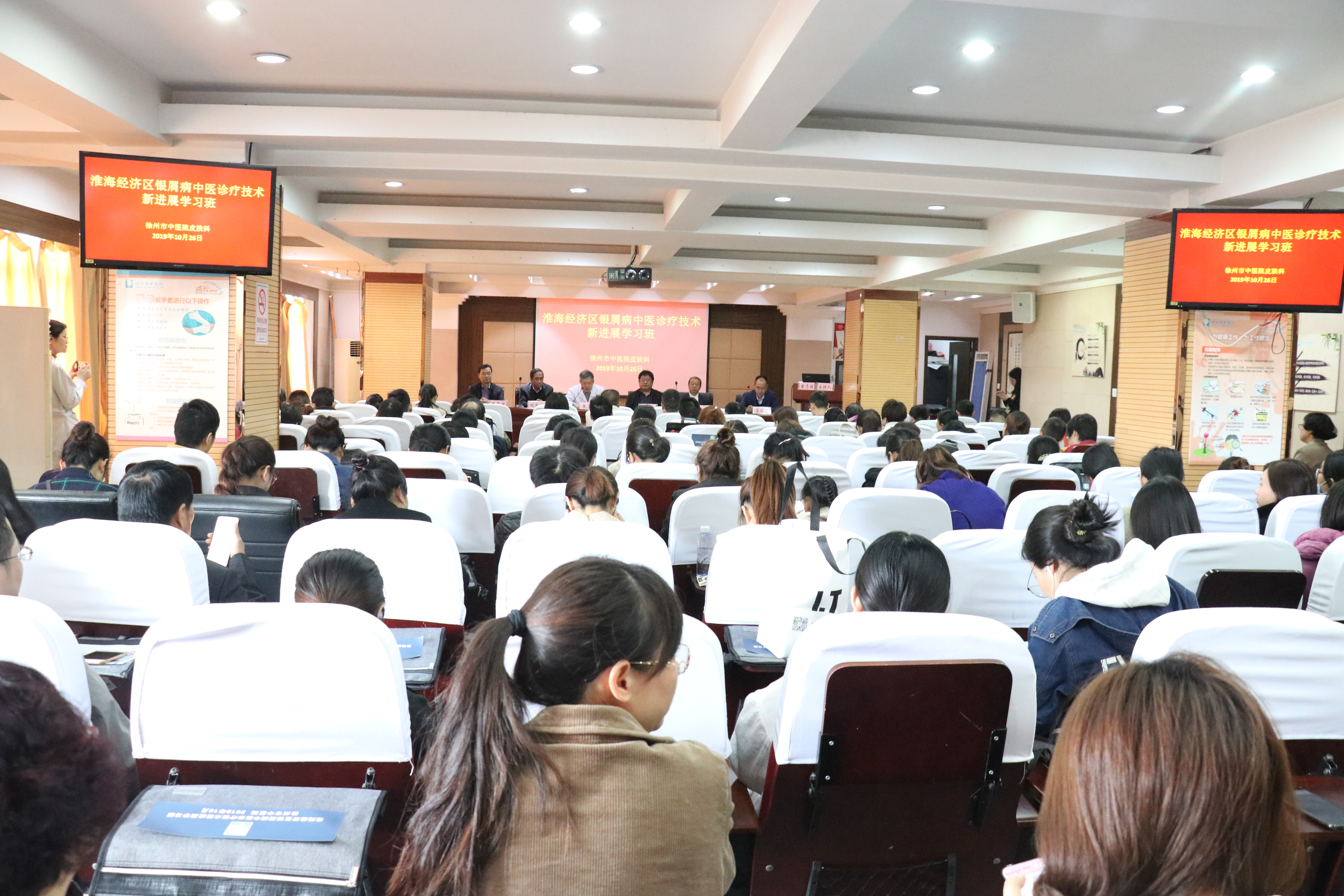 10月26日,由徐州市中医院主办的国家级继教项目、淮海经济区银屑病中医诊疗技术新进展学习班在徐州市中医院多功能厅隆重召开,会议就中医及中西医结合治疗银屑病等方面的新理论、新技术、新疗法进行了较为深入的交流。内容精彩纷呈,参会代表200余人。