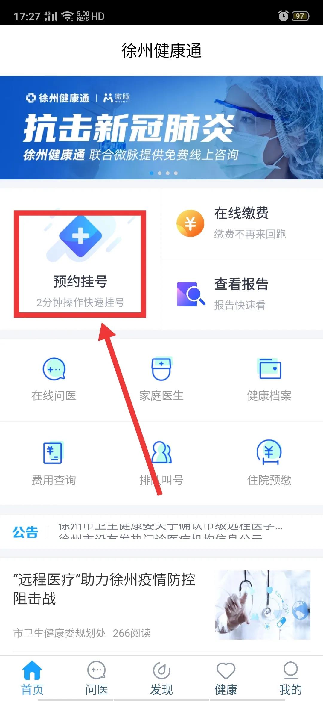 (4)“徐州健康通”APP预约挂号:扫描二维码下载“徐州健康通”APP软件→登录→预约挂号→选择科室→选择医生;