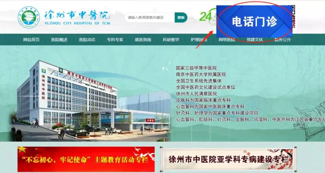 (5)医院官网开通 “电话门诊”功能业务(各科室电话门诊号码可登陆徐州市中医院官方网站www.xztcm.com查询)。