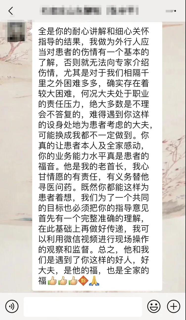 “老首长年龄大了,清创植皮太受罪,我就咨询各地的战友,看看能不能碰碰运气——找到不用手术就能祛疤的方法。”张先生在微信上与陈艳护士交流。