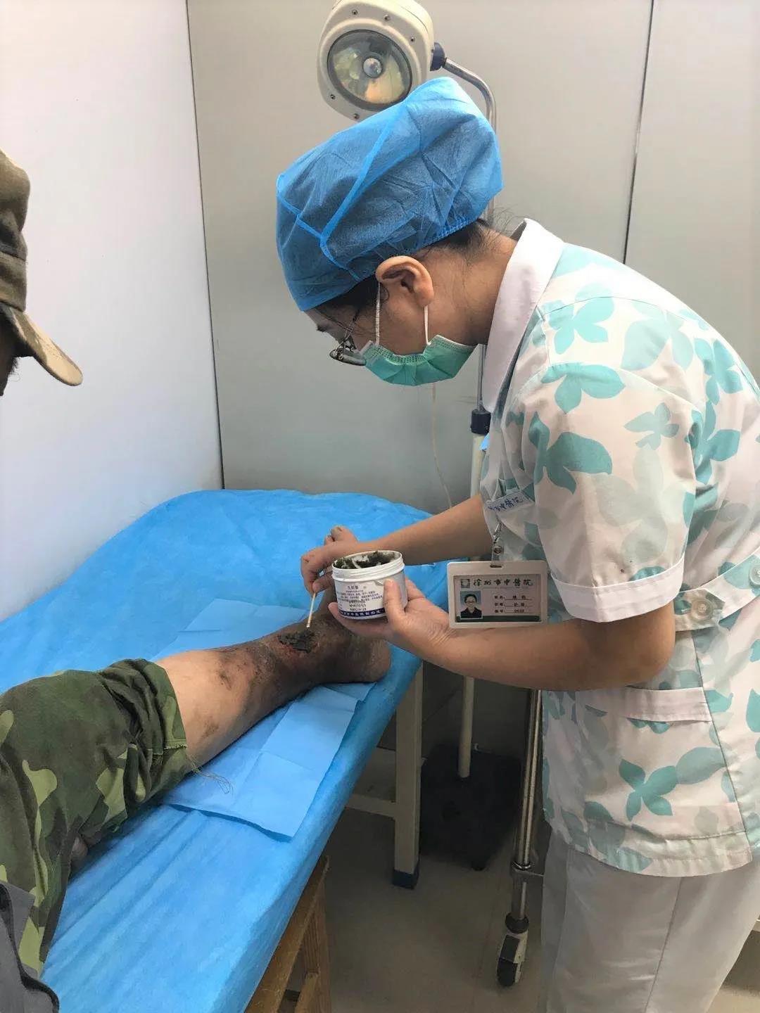 陈艳护士表示:“根据患者伤口愈合情况进行中西结合交替换药,可以大大缩短去痂过程需要的时间,提高生肌膏的渗透吸收效果,互为条件,相互支持,为患者减轻疼痛,也避免了二次手术。”