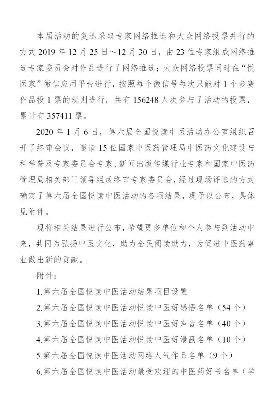 第六届全国悦读中医活动由省级中医药管理部门、中国中医药出版社、中华中医药学会、《中国中医药报》社有限公司等共同承办,共有500余家中医药学会、中医药院校、医疗机构、科研机构、新闻出版机构等单位进行了作品征集。经过作品征集、初赛、复赛、网络投票等环节,经过终审评选,各项结果终于揭开面纱。
