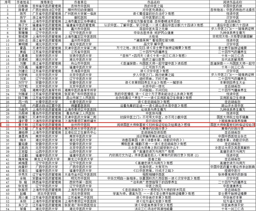 第六届全国悦读中医活动悦读中医好感悟获奖名单(54个)