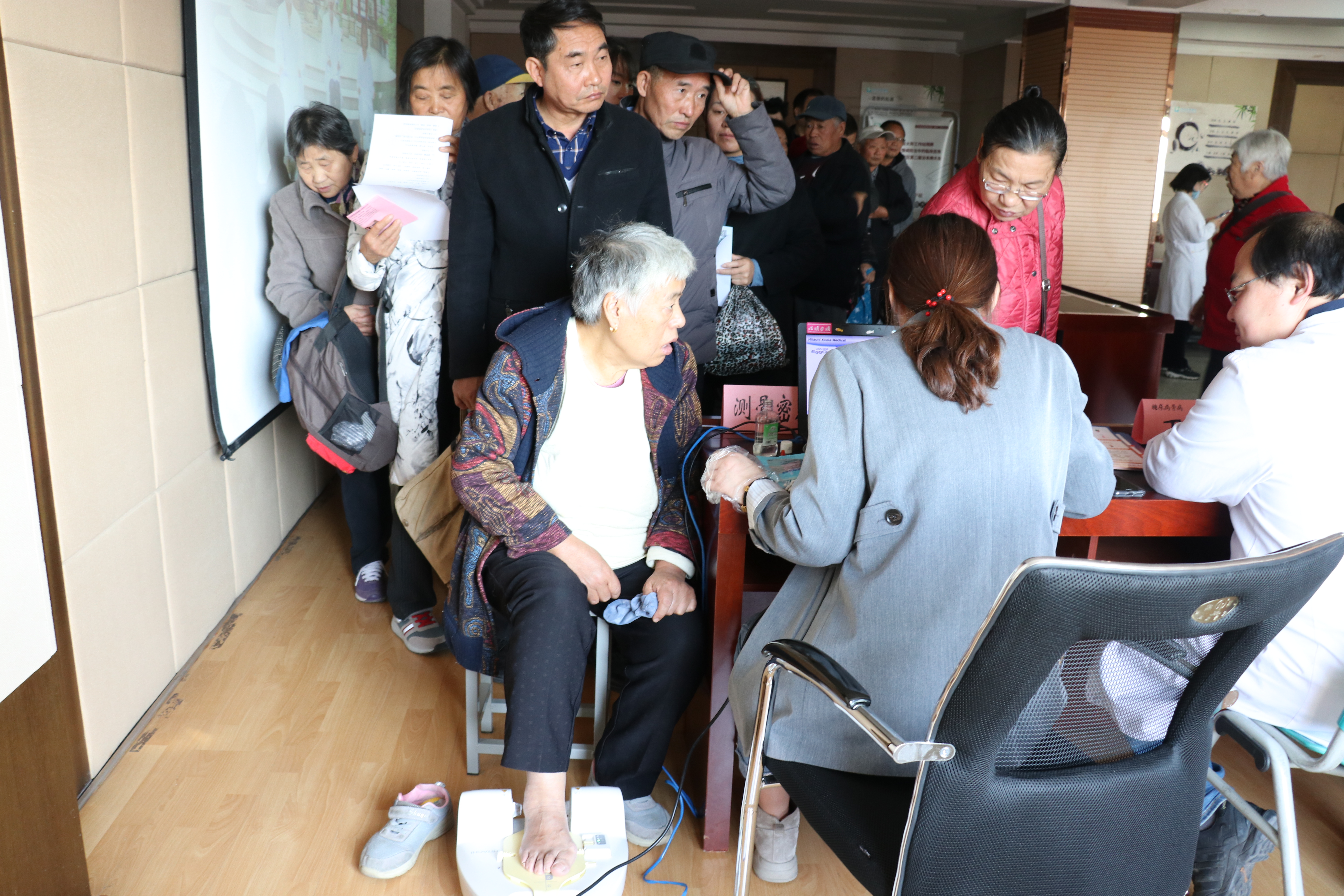 每一组专家台前都排起长长的队伍,专家们认真为患者检查,耐心的回答问题,同时医务人员为患者免费测血糖、测尿蛋白、测骨密度、发放糖尿病健康教育材料……个个忙得停不下来。