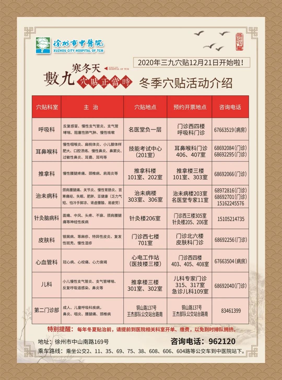 当前位置: 首页>【预约】数九寒冬天 穴贴正当时,徐州市中医院三九穴贴12月21日开贴!您预约了吗?