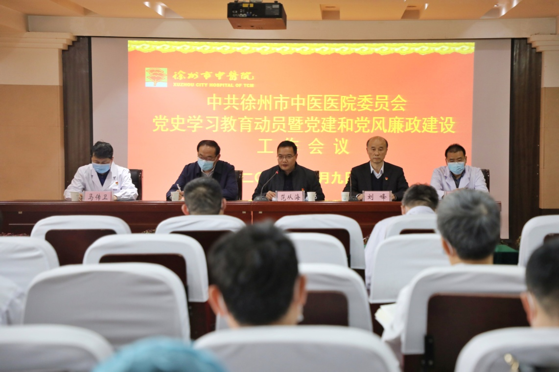 4月9日下午,徐州市中医院党委召开党史学习教育动员暨2021年党建和党风廉政建设工作会议。主要深入学习贯彻习近平总书记在党史学习教育动员大会上的重要讲话精神,认真落实省、市委及市卫健委党委动员大会精神和2021年我市卫生健康系统党风廉政建设工作会议精神,动员医院全体党员干部学党史、悟思想、办实事、开新局,迅速兴起党史学习教育热潮。会议由党委书记范从海作动员部署讲话,党委副书记、院长刘峰主持,全体班子成员、党总支书记、党支部书记、职能科室负责人、科主任、护士长参加会议。