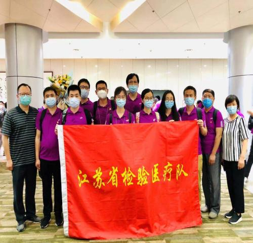 “疫情就是命令,防控就是责任”。自新冠肺炎疫情发生以来,检验科在院领导的关心支持下,科室全体工作人员,加班加点、积极投入到新冠肺炎的防治工作中。2020年9月份,医院接到上级部门任务,需要委派两名核酸检测人员支援新疆,检验科接到医院通知后,在科室工作人员紧张的状况下,克服困难,立即选派业务技能优良、核酸检测工作经验丰富的李磊、耿继儒两名同志跟随江苏医疗检测队奔赴新疆喀什,援疆期间,他们和队友们团结协作,日夜奋战,全力提升检测效率,为有效控制疫情作出了积极贡献,交出了合格答卷。