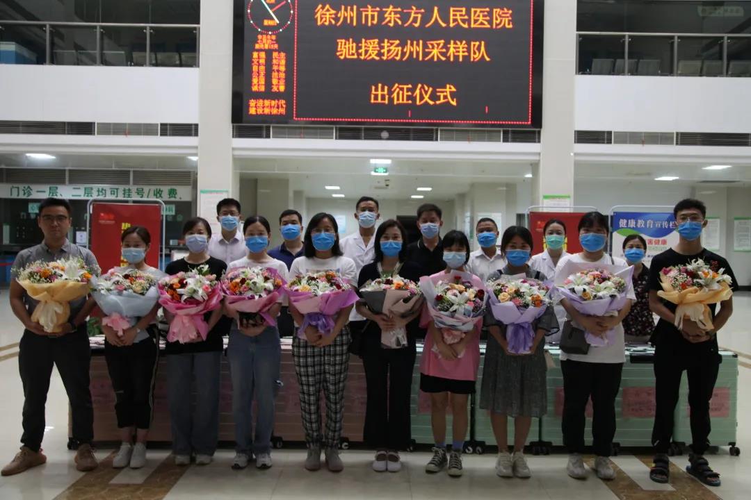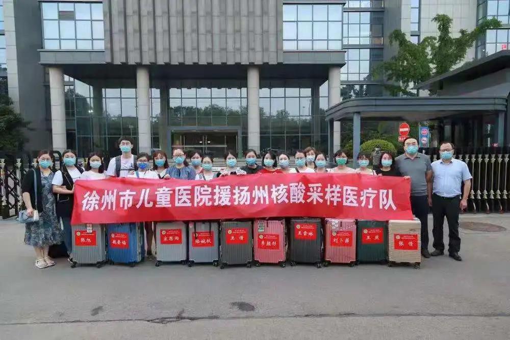 按照江苏省卫健委统一部署,徐矿总医院援扬州核酸检测采集队15名队员,星夜启程,奔赴扬州,她们与前期支援南京市核酸检测现转战至扬州的5名检测队员会师。