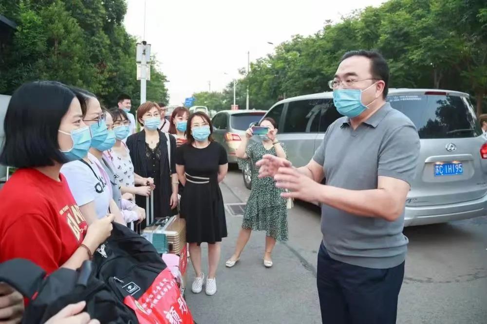曹同斌院长、王萌副院长一路跟车一直将10名护理人员护送到市卫健委大本营,曹院长说:大家是带着全体康复医院人职责和使命去的,一要守纪律,二要讲团结,三要保平安,一定要不负重托不辱使命,早日平安归来。