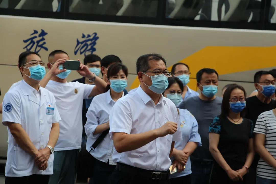 8月8日早上临行前,张基栋副院长及护理部陈学玲主任到场送行,并叮嘱大家,此次行动责任重大,使命光荣,一定要注意自身安全,做好防护,平安凯旋。