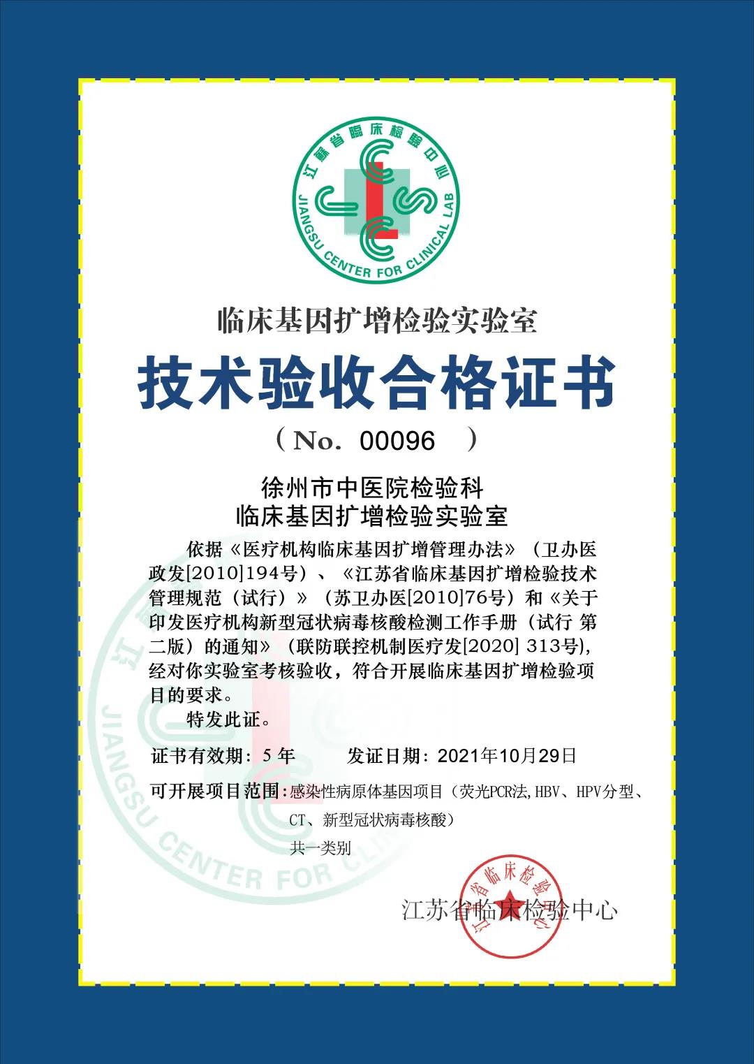 为贯彻国家、省、市县疫情常态化防控要求,全面提升新冠病毒核酸检测能力,我院严格按照省卫健委《关于做好疫情常态化防控下新冠病毒核酸质量控制工作的通知》和《江苏省临床基因扩增技术管理规范(试行)》等文件要求,历经精心设计、改建施工、仪器采购、人员培训等工作,建成符合要求的临床基因扩增检验实验室(PCR实验室)。2021年10月29日,我院PCR实验室顺利通过省临检中心评审组专家复评审并正常投入使用。