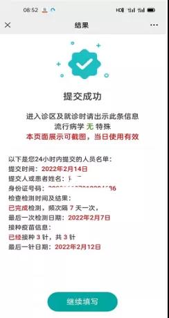 填报完成请截图保存,就诊当日将填写的界面展示给预检分诊工作人员查看!如有表中所列情况,请主动告知,如您隐瞒,将承担相应法律责任!