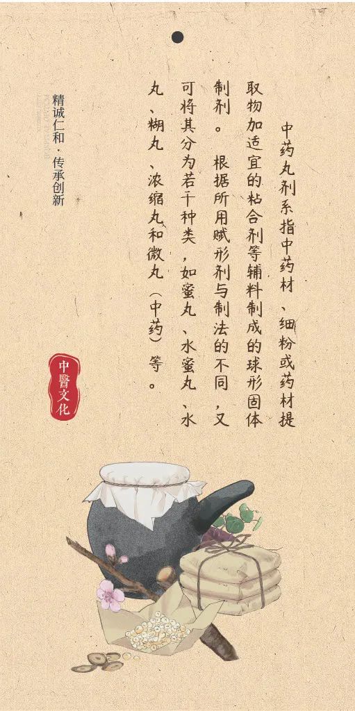 丸剂系指中药材、细粉或药材提取物加适宜的粘合剂等辅料制成的球形固体制剂。根据所用赋形剂与制法的不同,又可将其分为若干种类,如蜜丸、水蜜丸、水丸、糊丸、浓缩丸和微丸(中药)等。