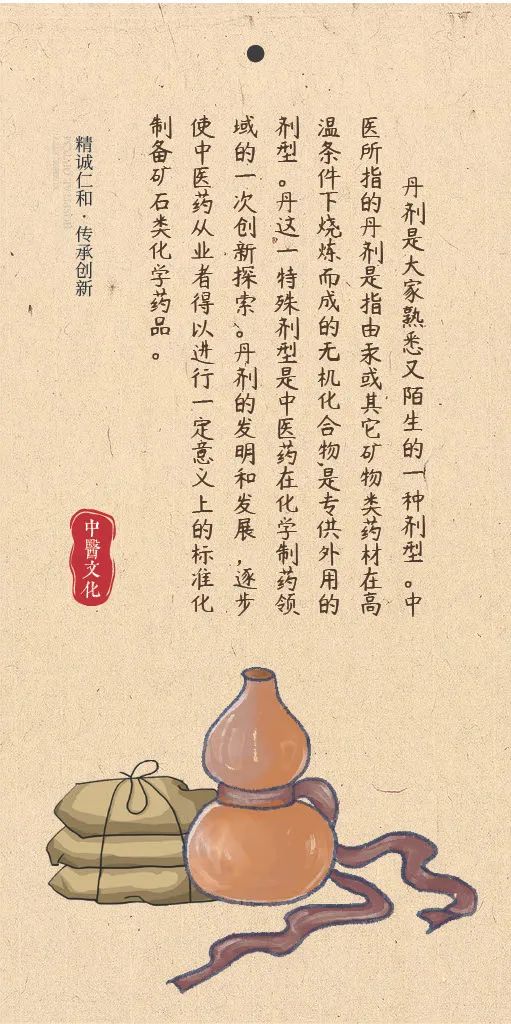 丹剂是大家熟悉又陌生的一种剂型。中医所指的丹剂是指由汞或其它矿物类药材在高温条件下烧炼而成的无机化合物,是专供外用的剂型。丹这一特殊剂型是中医药在化学制药领域的一次创新探索。丹剂的发明和发展,逐步使中医药从业者得以进行一定意义上的标准化制备矿石类化学药品。
