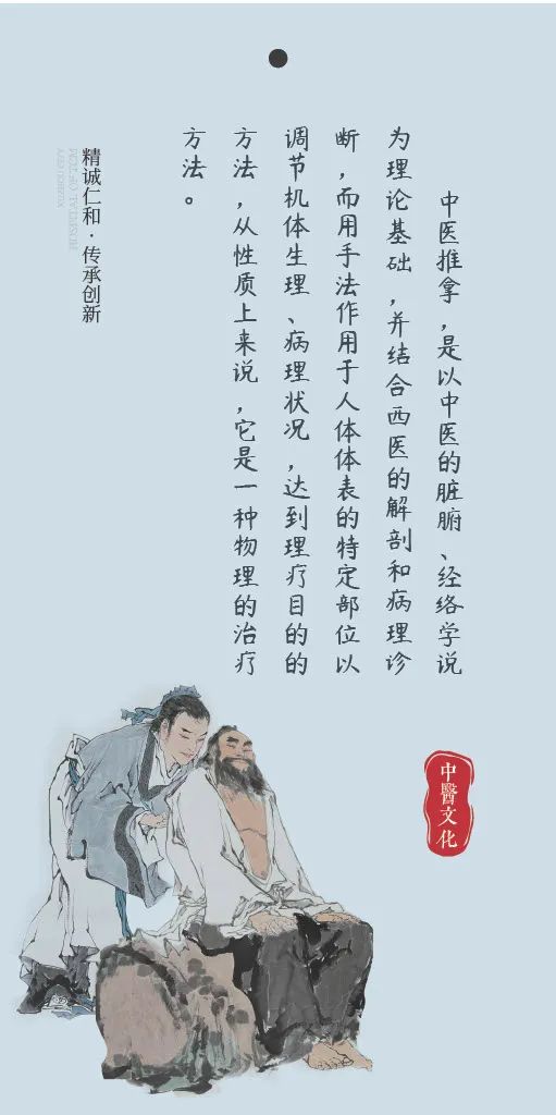 中医推拿,是以中医的脏腑、经络学说为理论基础,并结合西医的解剖和病理诊断,而用手法作用于人体体表的特定部位以调节机体生理、病理状况,达到理疗目的的方法,从性质上来说,它是一种物理的治疗方法。