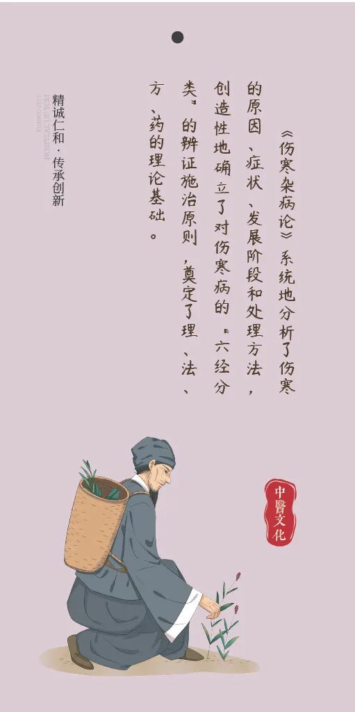 《伤寒杂病论》系统地分析了伤寒的原因、症状、发展阶段和处理方法,创造性地确立了对伤寒病的“六经分类”的辨证施治原则,奠定了理、法、方、药的理论基础。