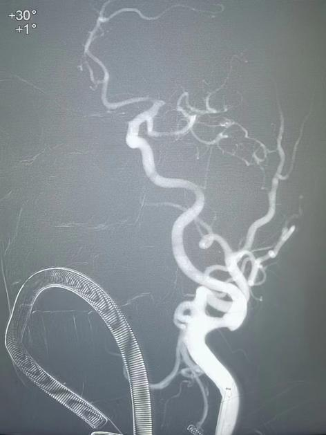 目前徐大爷的头颅CT未见责任病灶,仍存在介入的手术的指征,在与家属积极沟通病情并告知手术风险后,史江峰主任紧急安排手术治疗。在麻醉科与介入科通力合作下,徐大爷的取栓手术进展顺利,生命体征逐渐平稳。目前徐大爷恢复尚可,在NCU接受进一步对症治疗。