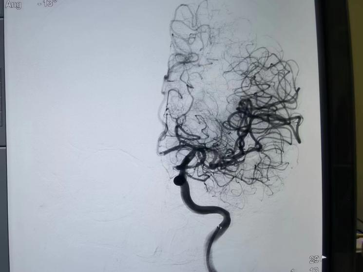 郭主任紧急联系了具有多年介入经验的史江峰主任,史主任得知徐大爷的病情后,考虑徐大爷症状反复、加重,为大脑中动脉及分支代偿血管的再次梗死,根据血管条件和基础,进展为大面积梗死或梗死面积进一步扩大风险高,导致病情加重,出现脑疝、脑心综合征等,继发肺部感染等可能。