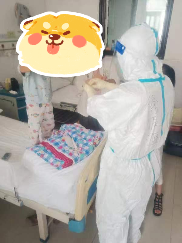 有一位3岁的孩子,因父母也是阳性,在其他病区无法陪伴,护士先当起孩子临时的母亲,周文博主任和徐振海护士长及时联系医院和上级部门,经过协商,母亲转至我们病区,和孩子同住一个病房,方便了孩子的治疗和照护。“我是你工作中的过客,你却是我人生的转折”,听着孩子母亲简朴的话语,周主任说:“有了你们的理解和配合,相信病情会很快控制,身体会很快康复,疫情也就很快结束。”