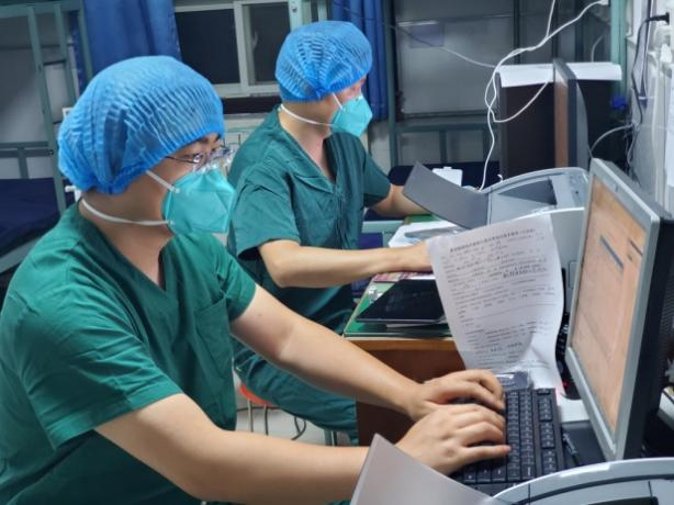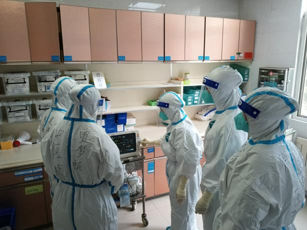 我院医疗队接管的隔离六病区不是负压病房,队员们承受比负压病房更高的感染风险。为了减少暴露和感染的风险,每天交班徐护士长都会一遍遍叮嘱:在治疗同时也要保护好自己。他们每次持续工作6小时不能吃喝,不能上厕所,穿着密不透风的防护服,又闷又热,靠着坚强的意志力去完成工作。当转送完最后一个病人后,队员们对病区的所有房间按规范进行彻底的终末消毒,多遍高浓度含氯消毒剂的喷洒和擦拭及过氧化氢的熏蒸,使得空气中的气味刺激性很大,但保障了终末消毒的有效性。终末消毒处置完成后,许多队员都感到咽喉干燥和疼痛,听到核酸检测结束都是阴性,队员们虽然很疲惫和不适,但心情却是轻松的。徐振海护士长最终又带领大家对过往的工作进行了梳理、分析和总结。这些工作的背后是所有队员携手同心、不畏艰辛、日夜奋战所付出的努力。