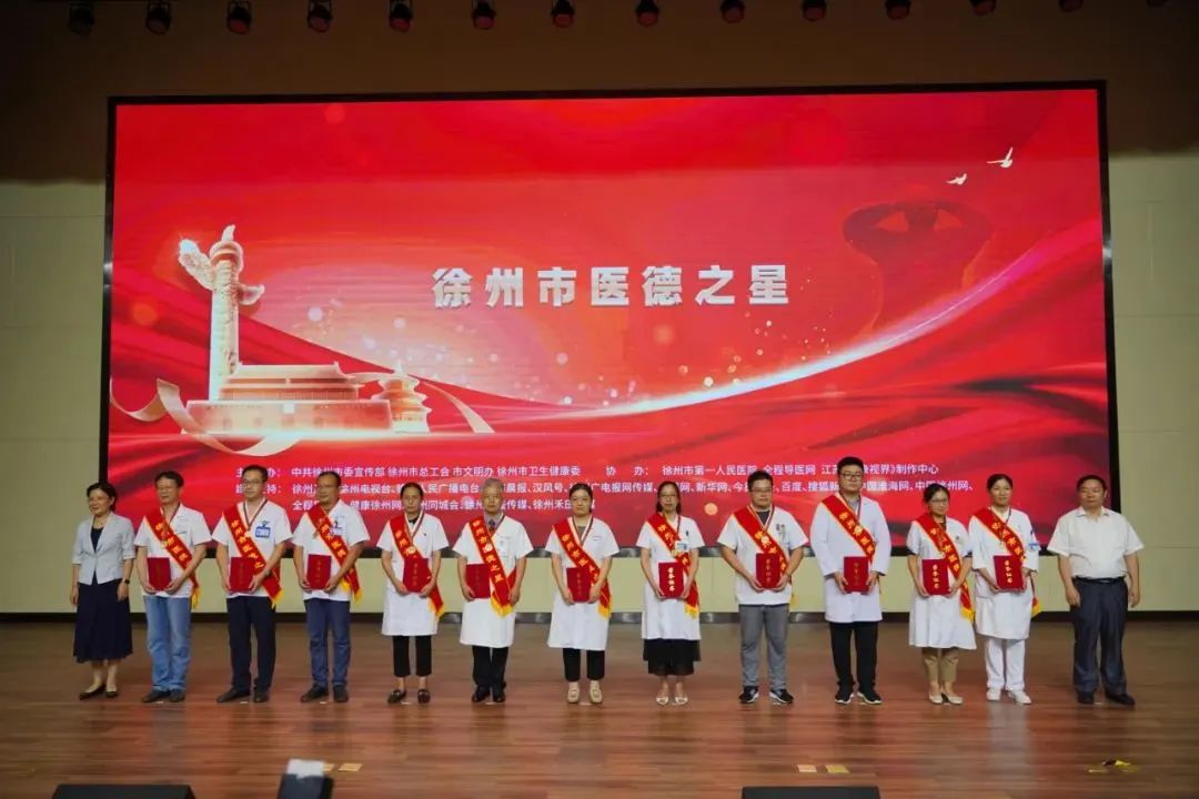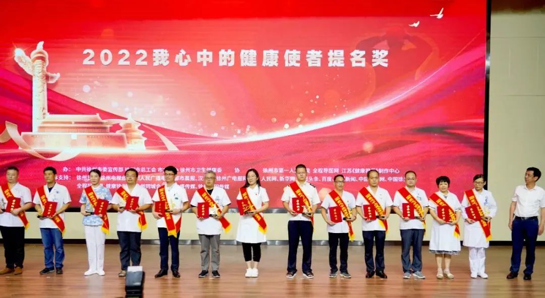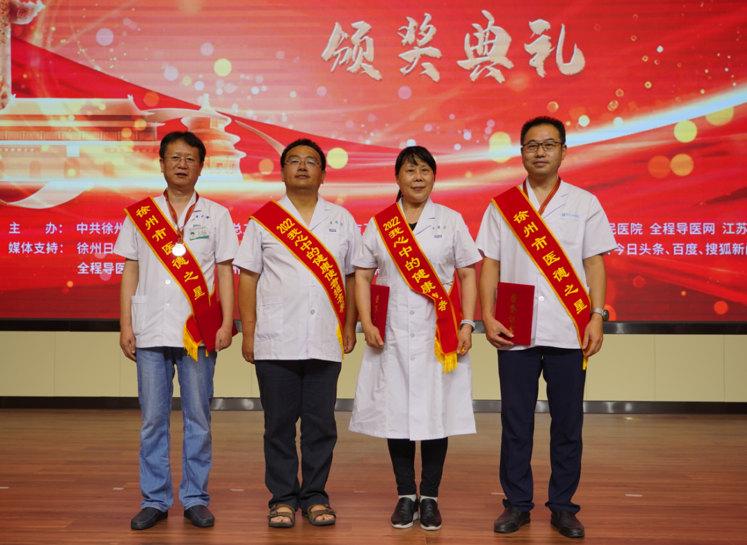 为庆祝第五中国医师节,充分展示全市医疗卫生人员良好的职业道德风范,发挥先进典型的示范引领作用,营造全社会尊医重卫的良好氛围,迎接党的二十大胜利召开,8月19日下午,由中共徐州市委宣传部、市总工会、市文明办、市卫健委联合主办的“徐州市庆祝第五个中国医师节暨2022我心中的健康使者、2022年度医德标兵、医德之星”颁奖活动在徐州市第一人民医院学术报告厅举办。