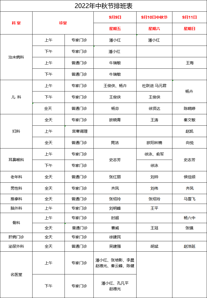 根据国家相关规定,结合医院的具体情况,经医院研究决定,徐州市中医院中秋节假期门急诊工作安排如下: