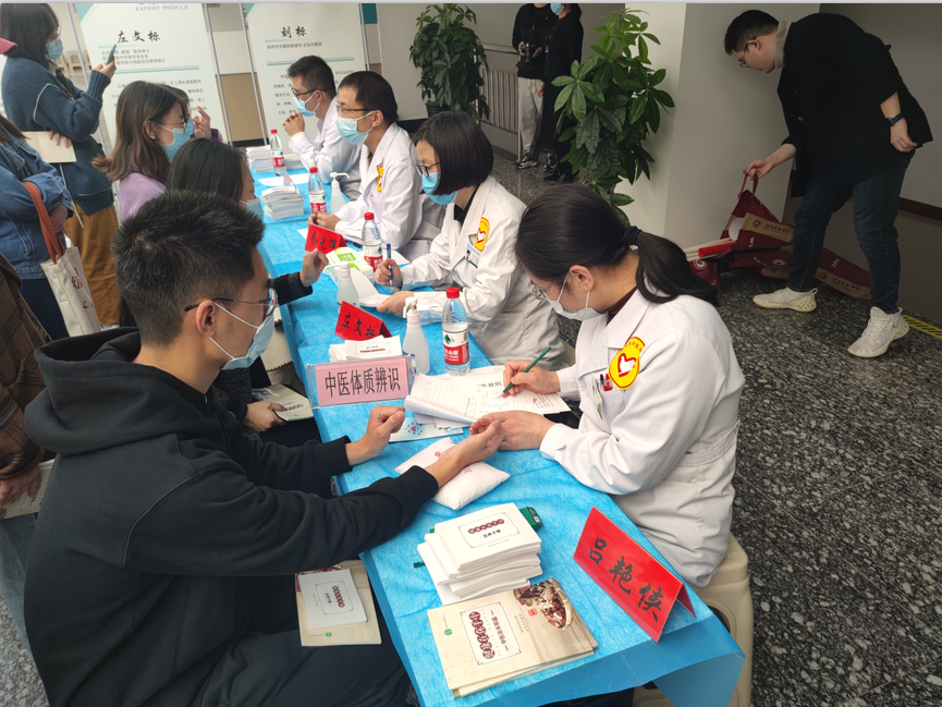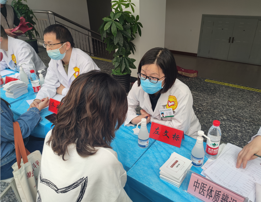 在中医体质辨识区域,医院的专家们为学生们进行中医体质辨识,为每个学生免费建立个人健康档案,把脉问诊,提供中医特色服务。通过不同体质给予时令化、个性化、全方位的健康指导,包括养生食疗、养生茶、养生粥、养生汤、经络穴位按摩保健、运动、足浴用药等,现场吸引了众多学生前来参与。