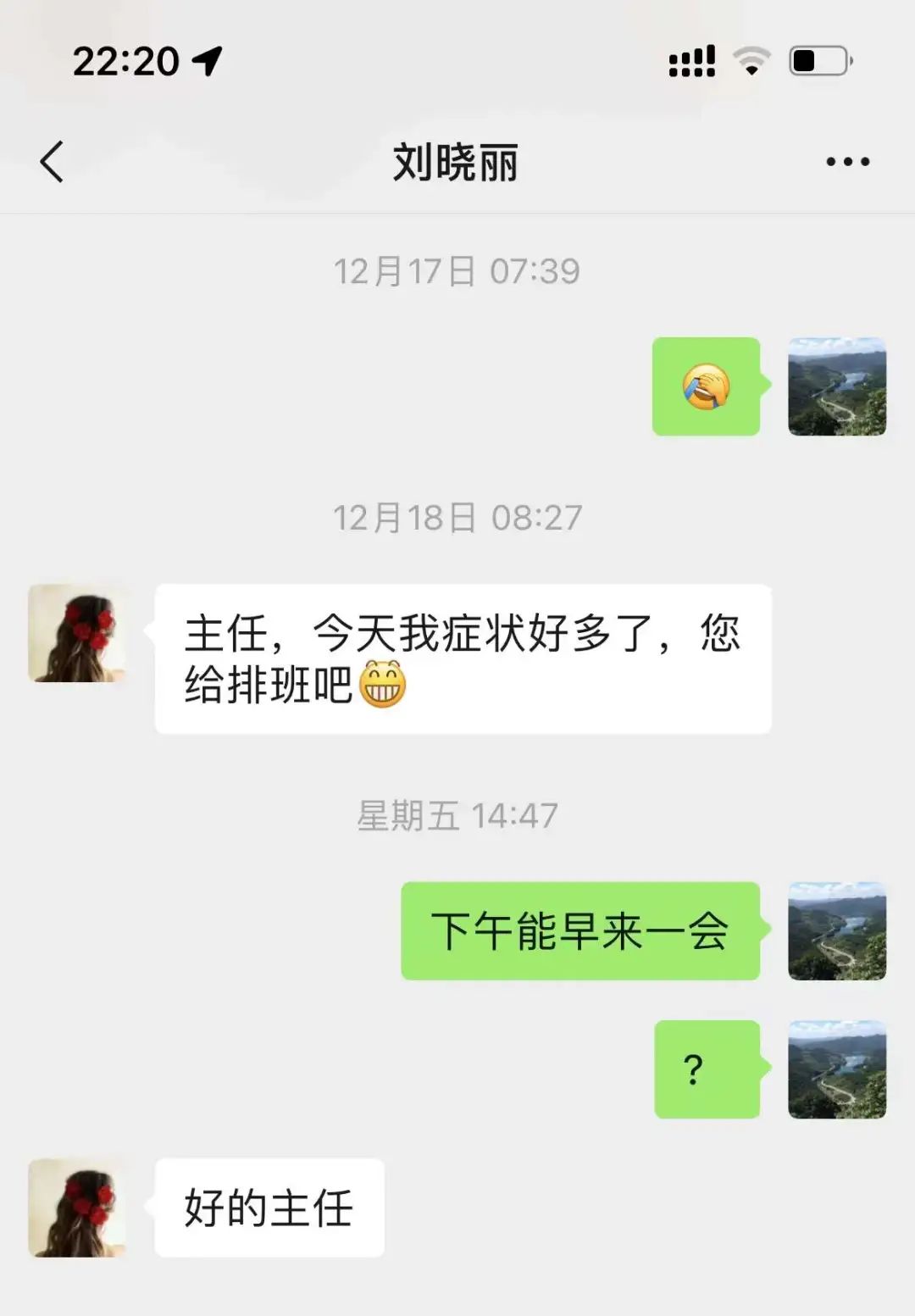 一天,刘医生值夜班,那是她核酸阳性的第三天,顶着全身酸痛、咽部干涩、咳嗽等不适,对着许多年老的患者大嗓门询问、交待病情,工作了几个小时后,刘医生已经快讲不出话来了,在工作间隙连忙跑到值班室想接一杯水喝,无奈饮水机空空如也,已经19点40分,她抱着试一试的态度打通了送水师傅的电话,果然电话那头传来了责备的声音:“也不看几点了,不送!” 没办法,刘医生只能强忍身体不适继续工作。
